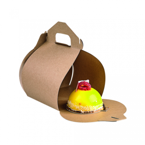 Kraft High Cake box with handle, 4.33"L x 3.94"W x 2.36"H, (per case = 50 each)