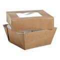 Kray Take Out Box, 7 oz., base: 2.8" x 2.8" x 1.6", lid: 3.35" x 3.35", small square, with steam proof window, microwaveable base, grease resistant, freezer safe, recyclable, Kraft paper, brown, (Per case = 250 each)