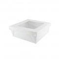 Kray Take Out Box, 118.3 oz., base: 7.9" x 7.9" x 3.2", lid: 8.5" x 8.5", square, with steam proof window, microwavable base, grease resistant, freezer safe, recyclable, paper, white, (Per case = 100 each)