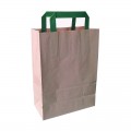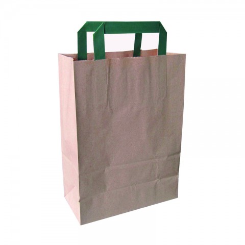 Grab & Go Carrier Bag, 7.9"L x 4"W x 11"H, with green handles, recycled Kraft paper, brown, (Per case = 250 each)