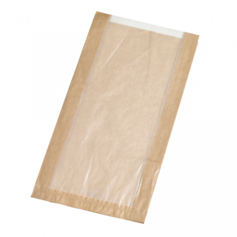 Grab & Go Sandwich Bag, 15.74" x 7.9" x 2.4", with crystal window, greaseproof, brown, (Per case = 1000 each)