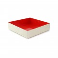 Macaron Solutions Box, 6.3" x 6.3" x 1.4", square, folding, with shiny red interior, compostable, wood, (Per case = 100 each)