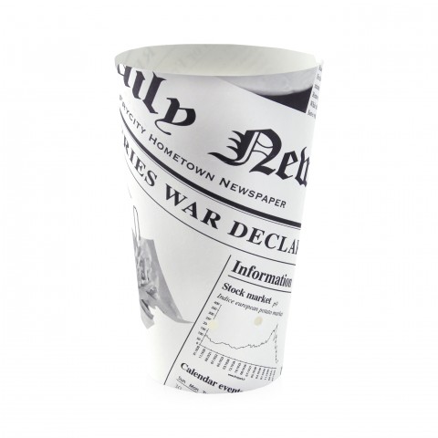 Grab & Go Happy Fries Snack Cup, 14 oz., 2.36" dia. x 6.3"H, closable top, freezer safe, recyclable, ventilated, newsprint, paper, white, (Per case = 1000 each)
