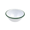 Bowl, 6.2" dia. x 2.6"H, straight side, white with green rim, enamel, (Per case = 12 each)