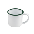 Mug, 3 oz., 2"dia. x 2"H, mini, white with green rim, enamel, (Per case = 12 each)