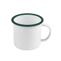 Mug, 17 oz., 4.7"dia. x 3.5"H, white with green rim, enamel, (Per case = 12 each)