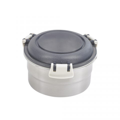 Noxbox Lunchbox, 5.4"dia. x 2.87"H, with black PP lid, round, stainless steel, (Per case = 12 each)