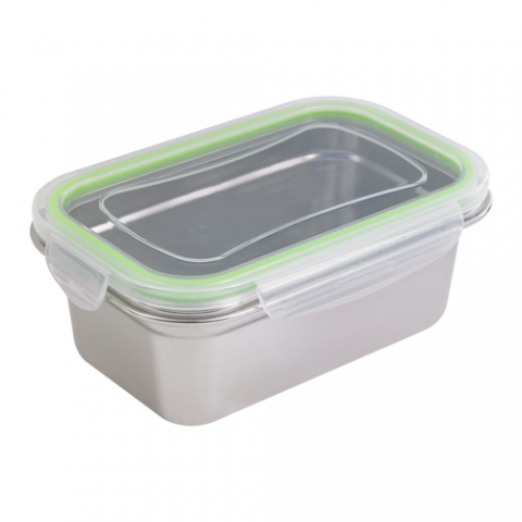 Noxbox Lunchbox, 34 oz., 7.6" x 4.9" x 2.75", with clear PP lid, rectangular, stainless steel, (Per case = 6 each)
