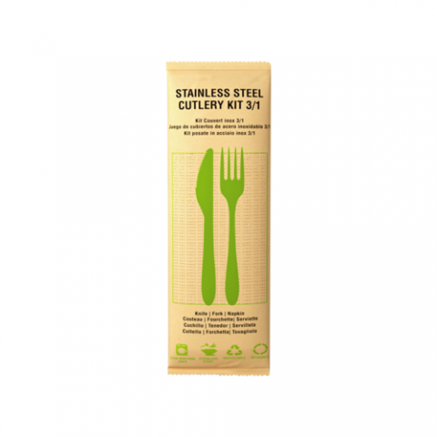 Cutlery Kit with Paper Wrapped, 3/1, 8-1/8", stainless steel, (per case = 250 each)
