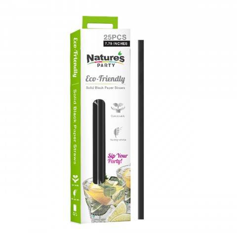 Straw, 0.02" dia. x 7.75"L, paper, solid black, (Per case = 300 each)