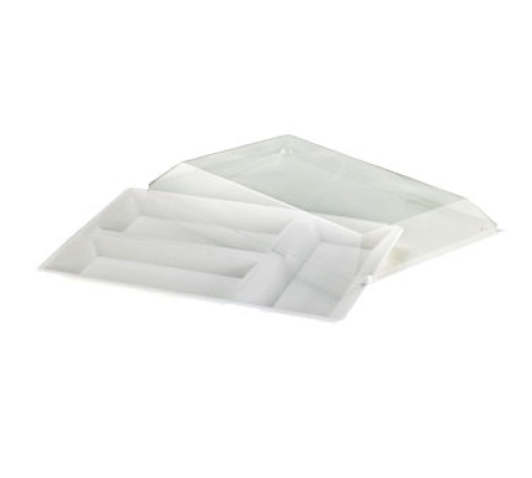 Eco Compartment Tray, 15.75"L x 10.63"W x 1.10"H, rectangular, with lid 210ECODL4129, microwavable, grease resistant, freezer safe, reusable, compostable, biodegradable, sugarcane, white, (Per case = 100 each)