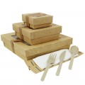 VIP Set, Includes: (2) Kraft Kray Boxes with PET Window Lid - 7oz 2.8 x 2.8 x 1.6in - 250 pcs (210KRAYB85), (2) Kraft Kray Boxes with PET Window Lid - 22oz 4.7 x 4.7 x 2in - 250 pcs (210KRAYB135), (3) Kraft Kray Boxes with PET Window Lid - 60oz 7.1 x 7.1 x 2in - 200 pcs (210KRAYB195), (1) Kraft Self-Adhering Paper Wrapper - 15.75in - 500 pcs (210LAP40), (2) Compostable Bamboo Fiber 4/1 Cutlery Kit With Kraft Bag (Knife, Fork, Spoon, Napkin) - 6in - 250 kits (210CVPLK416BB)