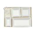 Eco VIP Meal Kit, includes: (200) 210ECOD1414 sugarcane plates, (100) 210ECOD2724 sugarcane plates, (100) 210ECOD140 sugarcane plates, (100) 210SAMBQ274 wood serving trays, (100) 210SAMLT274 clear plastic serving tray lids, assembly required, ships in 7 cases (priced per lot, 100 kits per lot)