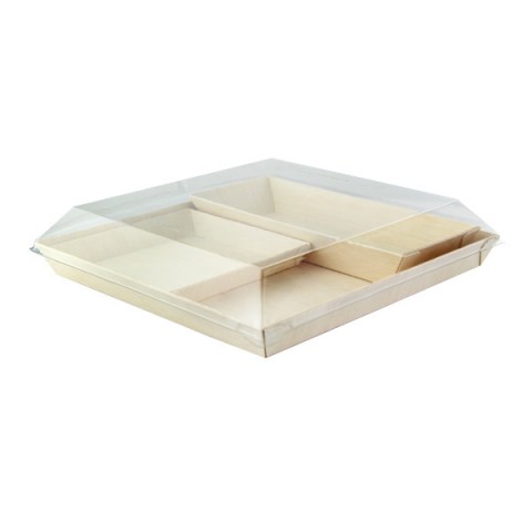 VIP Samurai Meal Kit, includes: (100) 210SAMBQ2323 42 oz. Samurai dishes, (100) 210SAMLT2323 42 oz. Samurai dish lids, (100) 210SAMBQ215 14 oz. Samurai trays, & (100) 210SAMBQ1313 8 oz. Samurai dishes, wood, natural, assembly required, ships in 4 cases (priced per lot, 100 kits per lot)