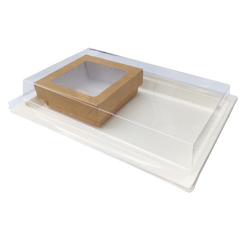 VIP Serving Kit, (200) 210APUTRP12 atlas trays, (200) 210APUTRPL13 atlas tray lids, & (250) 210KRAYB115 12 oz. takeout box, microwavable, grease resistant, freezer safe, reusable, compostable, biodegradable, assembly required, ships in 9 cases (priced per lot, 200 kits per lot)