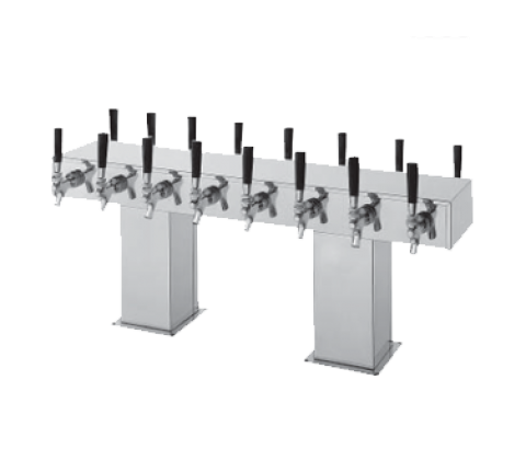 Back-to-Back Bridge Tee Draft Beer Tower, countertop, extra high, 55-3/4"W x 16-11/16"H, glycol-cooled, accommodates (18) faucets on each side , all Perlick towers include 630SS faucets (630SSTF faucets where applicable on TF Brass and Gold Towers), 3" OC, 13-1/4" faucet clearance, (2) 4-5/8" sq. bases, insulated dispensing heads, includes copper coolant lines & cold block, polished chrome finish (Note: Must be combined with a full Century system quote, cannot be ordered standalone. )