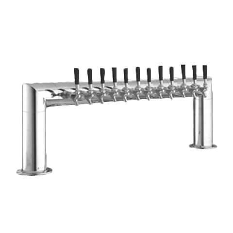 Pass-Thru Draft Beer Tower, countertop, 46"W x 14"H, glycol-cooled, accommodates (12) faucets , all Perlick towers include 630SS faucets (630SSTF faucets where applicable on TF Brass and Gold Towers), 3" OC, 10-3/8" faucet clearance, (2) 6" O.D. bases, polished chrome finish (Note: Must be combined with a full Century system quote, cannot be ordered standalone. )