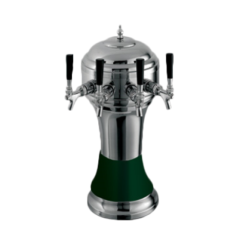 Roma Draft Beer Tower, countertop, 8-1/8" diameter x 20-1/2"H, glycol-cooled, accommodates (4) faucets , all Perlick towers include 630SS faucets (630SSTF faucets where applicable on TF Brass and Gold Towers), 3-1/2" OC, 13-1/8" faucet clearance, polished chrome body with green ceramic skirt (Note: Must be combined with a full Century system quote, cannot be ordered standalone. )
