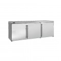Low Profile Refrigerated Back Bar Cabinet, three-section, 72"W, remote refrigeration, 19.8 cu.ft. interior volume, (3) hinged doors with locks, LED interior lighting, field-plumbed condensate evaporator, stainless steel interior, NSF, cULus