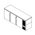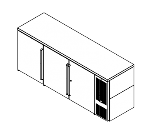 Refrigerated Back Bar Cabinet, three-section, 84"W, self-contained refrigeration, 24.8 cu.ft. internal volume, digital thermostat, LED interior lighting, front vented, automatic defrost & condensate evaporator, includes floor drain, stainless steel interior, side mount compressor, 1/4 HP, R290 Hydrocarbon refrigerant, NSF, cULus