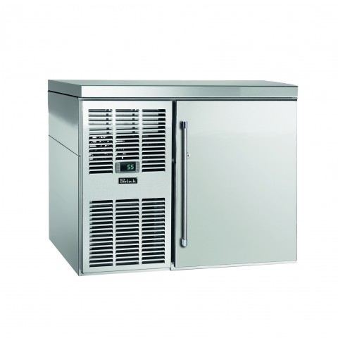 Low Profile Refrigerated Back Bar Cabinet, one-section, 36"W, self-contained side mount refrigeration, 6.2 cu.ft. internal volume, (1) hinged door with lock, digital thermostat, LED interior lighting, front vented, automatic defrost, includes floor drain, stainless steel interior, side mount compressor, 1/6 HP, R290 Hydrocarbon refrigerant, NSF, cULus