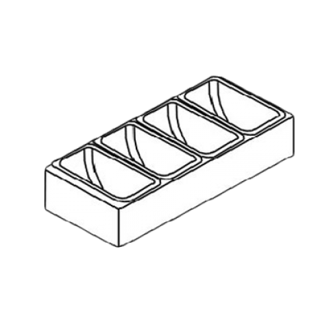 Condiment Tray, 4 plastic cups, stainless steel rack, 12-7/16" long, free standing or is designed to fit back of #BW6-24, BW9-30, BW12-36, BW6PT ice chest covers