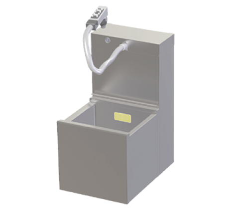 Tobin Ellis Signature Bottle Storage Bin, insulated with manifold housing, 12"W, holds (5) 3-3/4" dia. bottles, 6"H backsplash with 1" return, "flip-down" integrated soda manifold housing for use with Wunder Bar® & Schroeder America™ 8-14 product soda gun/manifolds, 1/2" NPS drain, stainless steel, stainless steel legs with adjustable thermoplastic feet, NSF (soda gun/manifold not included) (unit requires 40" minimum clearance under bar top for proper installation)
