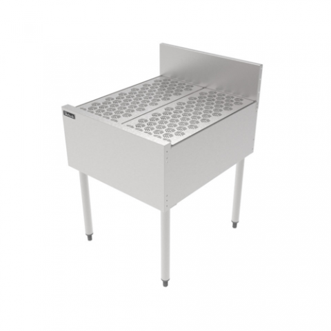 TSCE Series Underbar Drainboard, 24"W x 27-5/8"D, pitched drainboard top, (2) 12"W 'Honeycomb' shaped 18 gauge stainless steel perforated glass rack insert, all stainless steel construction, backsplash, Perlick Quick Clamp tool less leg attachment, stainless steel legs with adjustable thermoplastic feet
