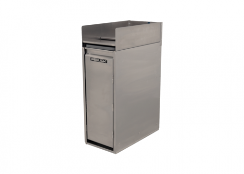 Full Door Underbar Trash Module, 12"W x 24"D x 32"H, fits standard slim container up to 30" high, designed to attach to adjoining equipment, easy removal of trash can, fully closed design for seamless integration with Perlick underbar equipment, field reversible door, stainless steel construction (wastebasket not included)