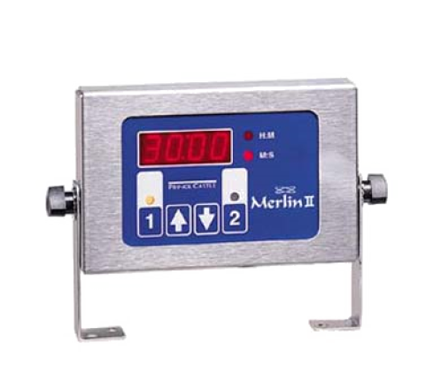 Merlin II Single Function Timer, electronic, 2-channel, single display, independently functioning programmable channels, multi colored LED channel indicators, digital channel display, dual tone alarm, includes 3-1/2" mounting brackets & menu labels, 10 ft. cord, "fat plug" transformer, 120v/60/1-ph, .083 amps, NEMA 5-15P cUL, UL