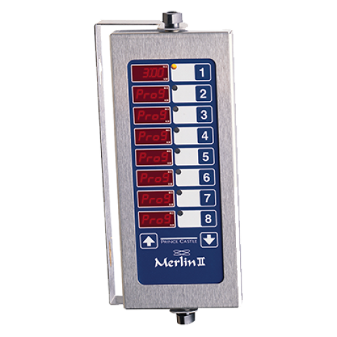 Merlin II Single Function Timer, electronic, 8-channel, multi-display, vertical mounting, independently functioning programmable channels, multi colored LED channel indicators, digital channel display, audible alarm (manual shut-off), includes mounting brackets & menu labels, 6' cord, "fat plug" transformer, 120v/60/1-ph, .096 amps, NEMA 5-15P, UL, cUL