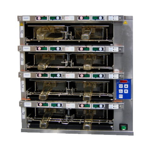MenuTrak Dedicated Holding Bin, countertop, pass-thru design, (4) shelf, (8) 1/3 size dual handle pans with covers (included), solid state digital controls, removable pan rack, storage for 6 different menus, MenuTrack food supervisory system, on/off switch, (6) independently controlled heaters, stainless steel & aluminum construction, 1600 watts, 13.3 amps, 120v/60/1-ph, NEMA 5-15P, UL, cUL, CE