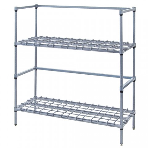 Tank & Beverage Container Dunnage Rack, wire, two-tier, modular, 48"W x 18"D x 54"H, (2) dunnage shelves, (2) 3-sided frames, (4) 54" posts, gray epoxy antimicrobial finish, NSF