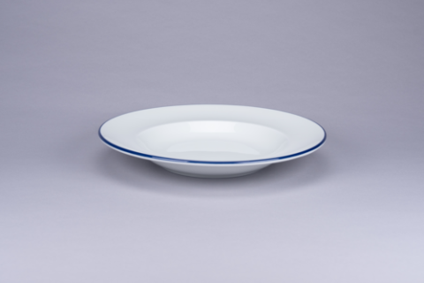 Round Deep Plate / Pasta Bowl, 16.2 oz., 11.02" dia., round, porcelain, white with blue rim, Rimz (12 each per case)