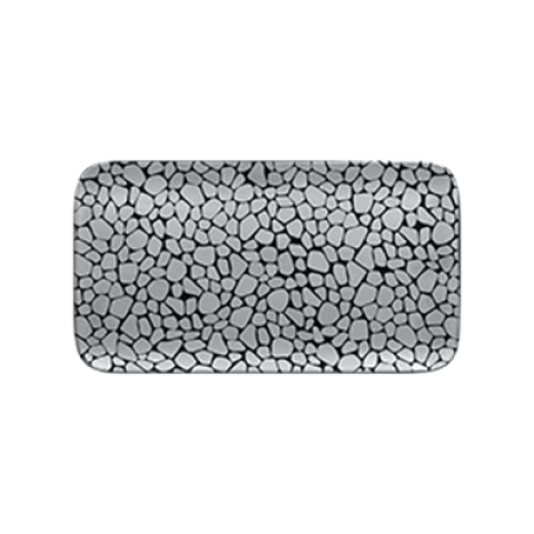 Cobbles Plate, 14.95"L x 8.25"W, rectangular, fridge/freezer/oven/dishwasher safe, porcelain, silver (6 each per case)