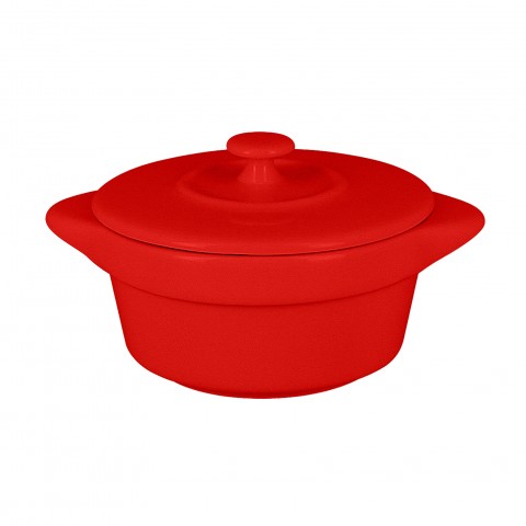 Chef's Fusion Mini Cocotte Dish, 3-4/5 oz., 3-1/3" dia., round, with lid, eared, fridge/freezer/oven/microwave/dishwasher safe, porcelain, ember red (12 each per case)