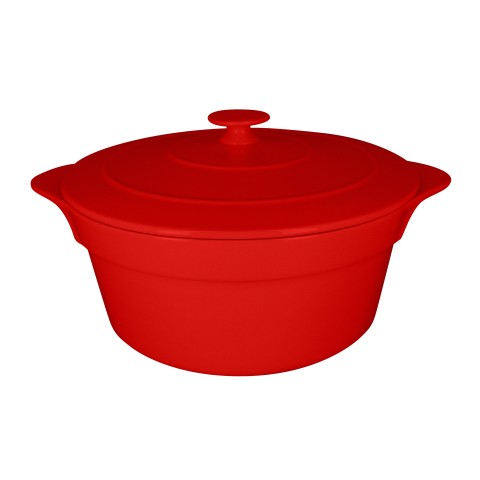 Chef's Fusion Cocotte Dish, 155-1/2 oz., 11" dia., round, with lid, eared, fridge/freezer/oven/microwave/dishwasher safe, porcelain, ember red (1 each per case)