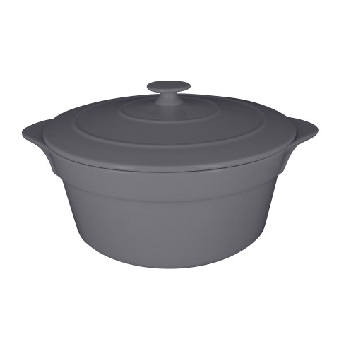 Chef's Fusion Cocotte Dish, 155-1/2 oz., 11" dia., round, with lid, eared, fridge/freezer/oven/microwave/dishwasher safe, porcelain, stone gray (1 each per case)