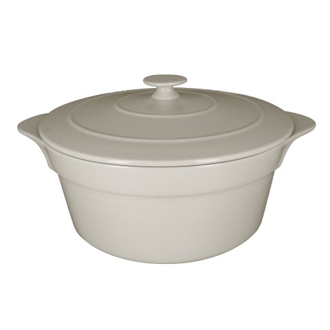 Chef's Fusion Cocotte Dish, 155-1/2 oz., 11" dia., round, with lid, eared, fridge/freezer/oven/microwave/dishwasher safe, porcelain, sand white (1 each per case)