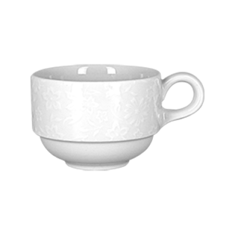 Blossom Cup, 7.8 oz., 3-1/3" dia., round, stackable, embossed, shock/scratch resistant, fridge/freezer/oven/microwave/dishwasher safe, high chip resistance, Ivoris (12 each per case)