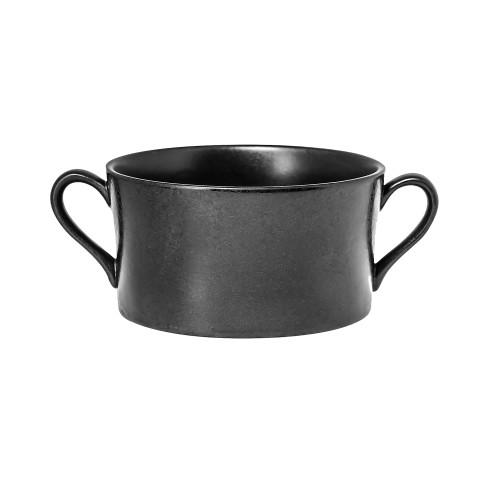 Edge Cream Soup Bowl, 11-7/8 oz., 4-3/8" dia., round, with handles, dishwasher & microwave safe, fully vitrified, porcelain, black (6 each per case)