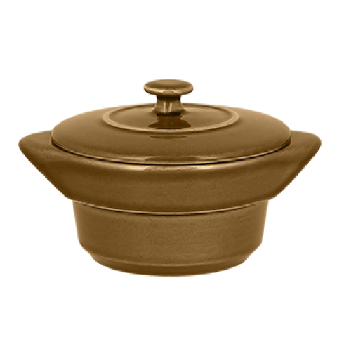 Chef's Classics Cocotte, 15.8 oz., 6.3" dia., round, with handles & lid, fridge/freezer/oven/microwave/dishwasher safe, porcelain, caramel (4 each per case)