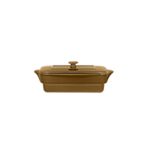 Chef's Classics Tureen, 22-5/8 oz., 7-9/16" x 3-15/16" x 2-3/8"H, rectangular, with lid, fridge/freezer/oven/microwave/dishwasher safe, porcelain, caramel (1 each per case)