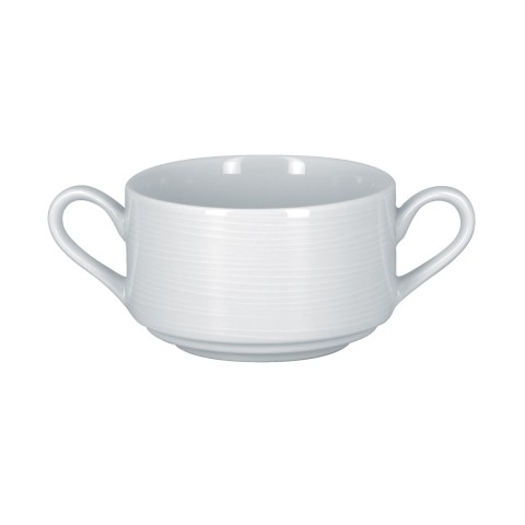 Helm Cream Soup Cup, 10-1/8 oz., round, with handles, stackable, fridge/freezer/oven/microwave/dishwasher safe, Polaris porcelain, white (12 each per case)