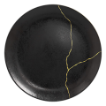 Kintzoo Plate, 11.4" dia., round, flat, coupe, fridge/freezer/oven/dishwasher safe, porcelain, black/gold (12 each per case)