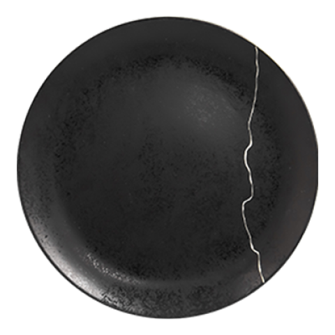 Kintzoo Plate, 11.4" dia., round, flat, coupe, fridge/freezer/oven/dishwasher safe, porcelain, black/silver (12 each per case)