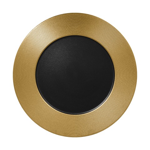 Metal Fusion Plate, 13" dia., round, flat, embossed rim, porcelain, black/gold (6 each per case)