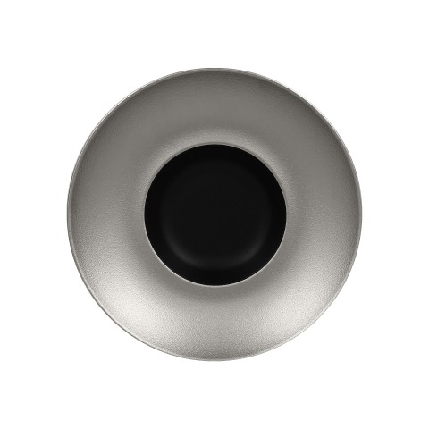 Metal Fusion Gourmet Plate, 10-1/4" dia., round, deep, wide rim, porcelain, black/silver (6 each per case)