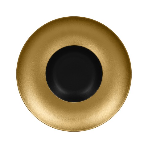 Metal Fusion Gourmet Plate, 11-2/5" dia., round, deep, wide rim, porcelain, black/gold (6 each per case)