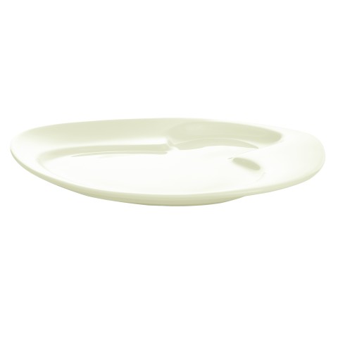 Nabur Dinner Plate, 2 basin, 12-1/4" x 10-1/4", round, porcelain, smooth glaze, white (6 each per case)